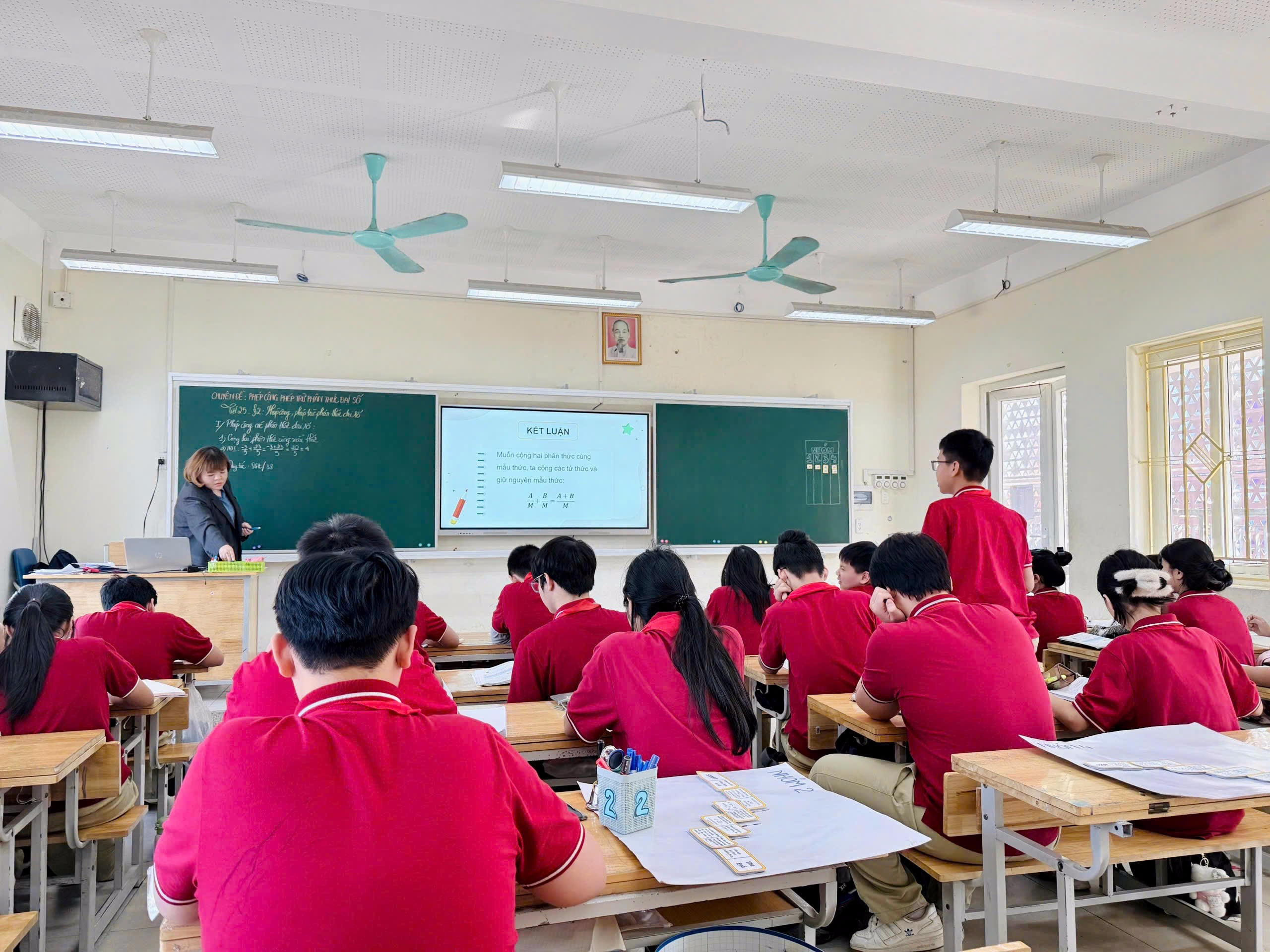 Cô giáo Trần Cẩm Nhung trong một tiết dạy môn Toán tại lớp 8A4.