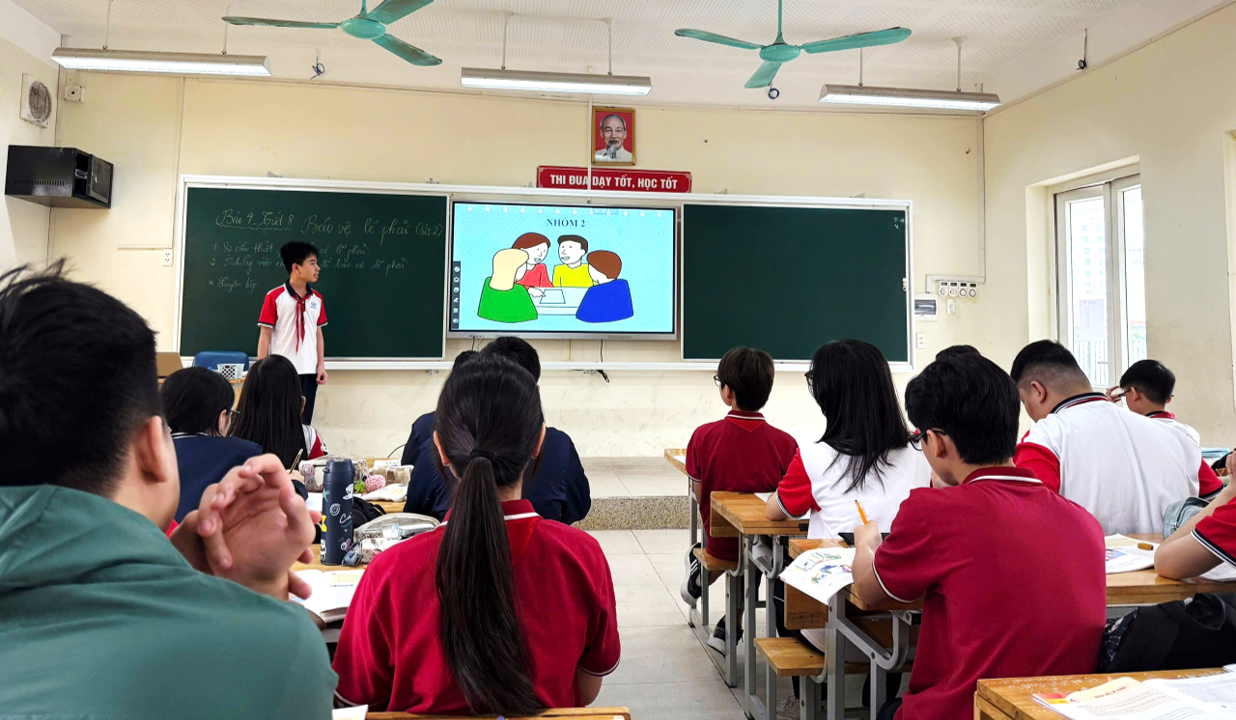 Điểm nhấn nổi bật của tiết học là sự chủ động của học sinh lớp 8A1. Các em tích cực nêu ý kiến, trao đổi, tranh luận và phản hồi lẫn nhau một cách tự tin, rõ ràng. Nhiều học sinh biết liên hệ thực tế, chỉ ra các hành vi đúng – sai trong đời sống hàng ngày và thể hiện khả năng phân tích vấn đề hợp lý. Các nhóm làm việc nghiêm túc, phân công nhiệm vụ rõ ràng, đảm bảo tiến độ và chất lượng từng phần việc.