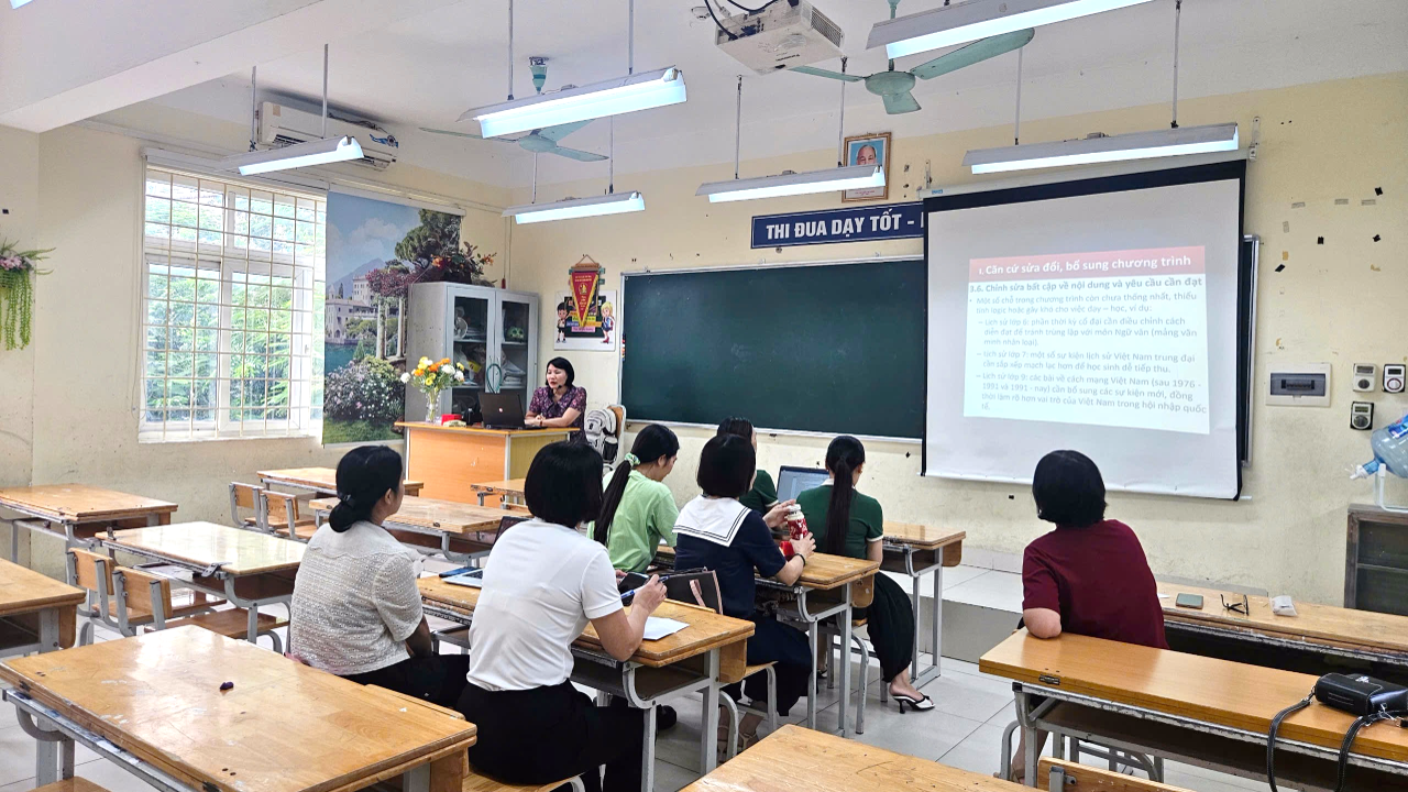 Thay mặt nhà trường, các đồng chí báo cáo viên gồm cô Nguyễn Thị Mai Phương (môn KHTN), thầy Nguyễn Việt Quốc (môn Giáo dục thể chất), cô Trần Hiền Anh (môn Ngoại ngữ), cô Đào Hồng Trang (môn HĐTN) và cô Hoàng Thị Nga (môn Lịch Sử) đã tham gia báo cáo, chia sẻ và trao đổi các nội dung chuyên môn trọng tâm của năm học mới. Nội dung báo cáo tập trung vào những điểm mới trong việc thực hiện Kế hoạch dạy học và kiểm tra, đánh giá định kì năng lực học sinh, định hướng xây dựng kế hoạch bài dạy theo hướng phát triển năng lực, và công tác tổ chức bồi dưỡng, thi học sinh giỏi các môn văn hóa lớp 9.