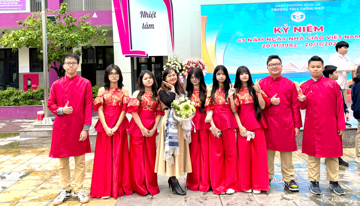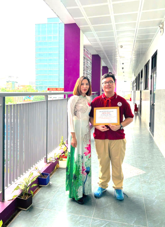 Chụp ảnh cùng cô giáo Nguyễn Thùy Linh – giáo viên bồi dưỡng cho Bảo những kiến thức bổ ích để bạn đạt được kết quả xuất sắc tại Kỳ thi HSG cấp Phường và lọt vào vòng thi cấp Thành phố.