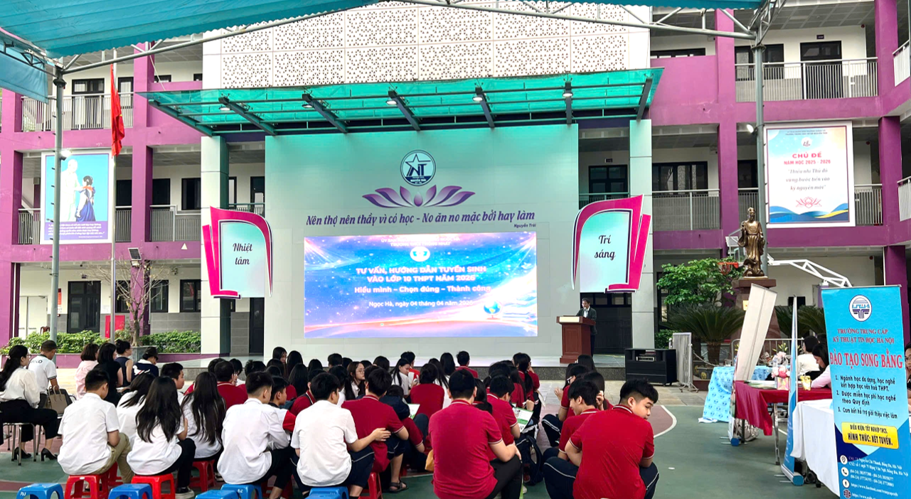 Phát biểu khai mạc chương trình, đại diện Ban giám hiệu nhấn mạnh vai trò của công tác hướng nghiệp trong bối cảnh đổi mới giáo dục hiện nay. Việc lựa chọn đúng hướng đi sau THCS không chỉ ảnh hưởng trực tiếp đến kết quả học tập ở bậc học tiếp theo mà còn tác động lâu dài đến sự phát triển nghề nghiệp của học sinh. Do đó, nhà trường luôn xác định tư vấn hướng nghiệp và tuyển sinh là một trong những nhiệm vụ trọng tâm, góp phần trang bị cho học sinh kiến thức, kỹ năng và thông tin cần thiết trước các quyết định quan trọng.