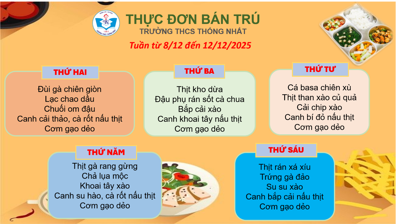 🌷Nhà trường xin gửi tới các bậc phụ huynh và các con học sinh Thực đơn tuần từ 8/12 -12/12/2025