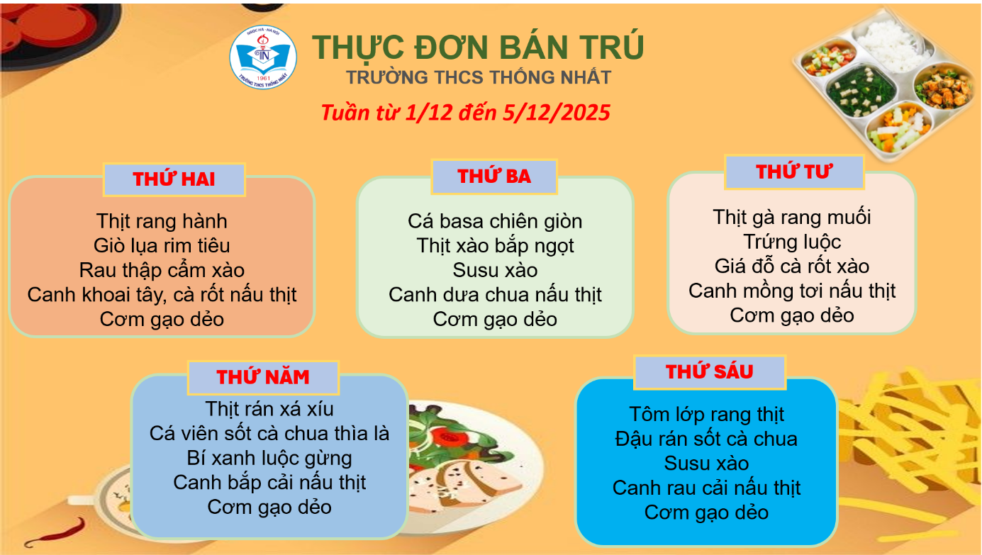 🌷Nhà trường xin gửi tới các bậc phụ huynh và các con học sinh Thực đơn tuần từ 1/12 -5/12/2025
