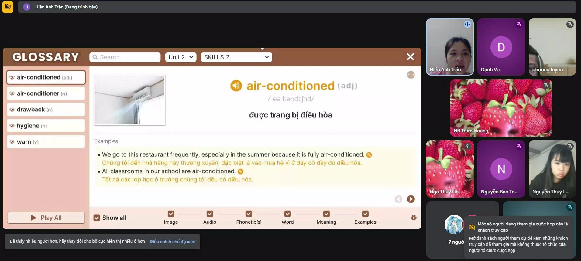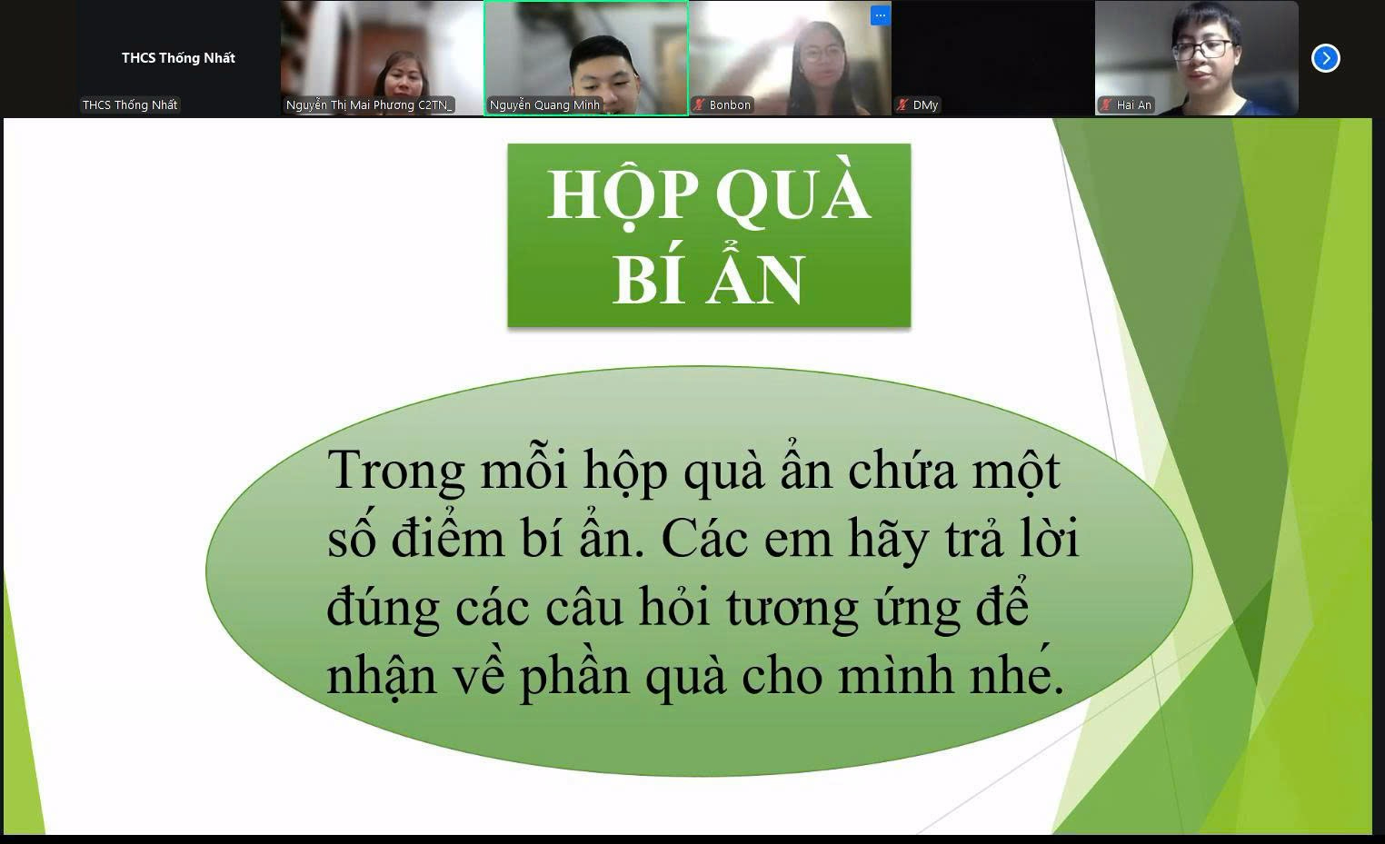 Các tiết học được tổ chức qua nền tảng Google Meet, Zoom, Google Classroom, với sự tham gia đầy đủ và tích cực của học sinh toàn trường. Nhiều giáo viên đã ứng dụng các công cụ tương tác như Quizizz, Jamboard, Padlet, bài giảng PowerPoint sinh động, giúp bài học trở nên hấp dẫn, dễ hiểu, đồng thời tăng cường sự tương tác giữa thầy và trò.
