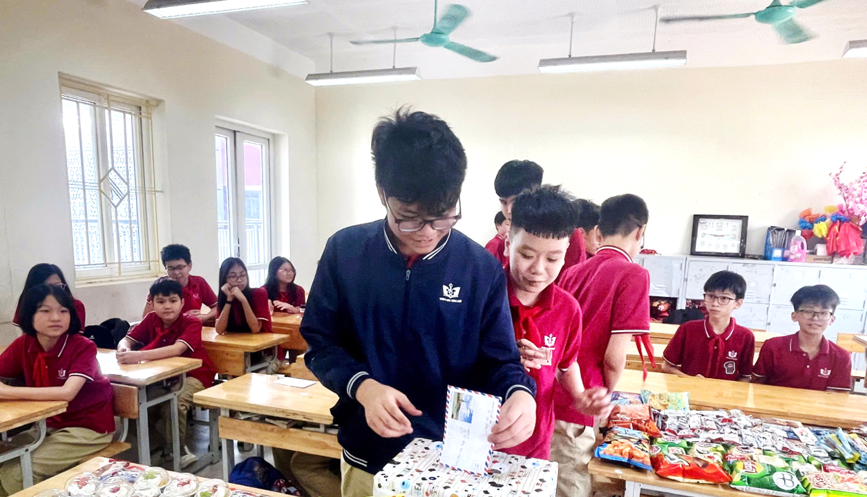Học sinh các lớp chia sẻ khó khăn với đồng bào bị thiên tai.