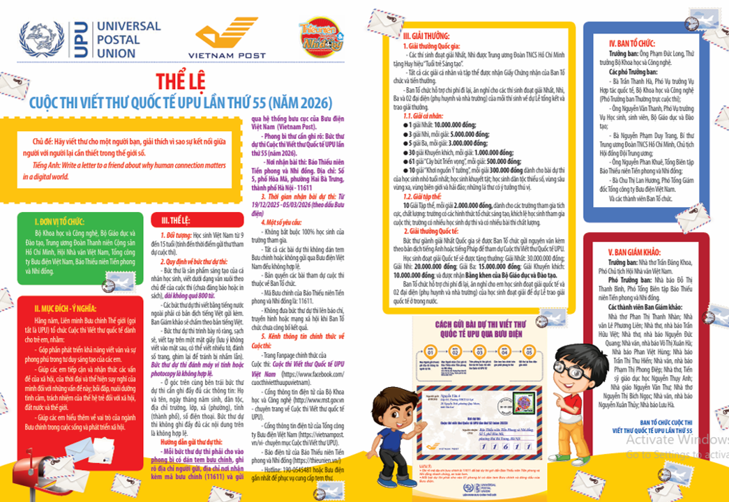 Cuộc thi Viết thư Quốc tế UPU là hoạt động thường niên có ý nghĩa giáo dục sâu sắc dành cho học sinh từ 9 đến 15 tuổi. Thông qua việc viết thư, học sinh có cơ hội rèn luyện khả năng diễn đạt bằng ngôn ngữ viết, phát triển tư duy sáng tạo, đồng thời thể hiện suy nghĩ, tình cảm và trách nhiệm của bản thân trước những vấn đề của cuộc sống và xã hội.