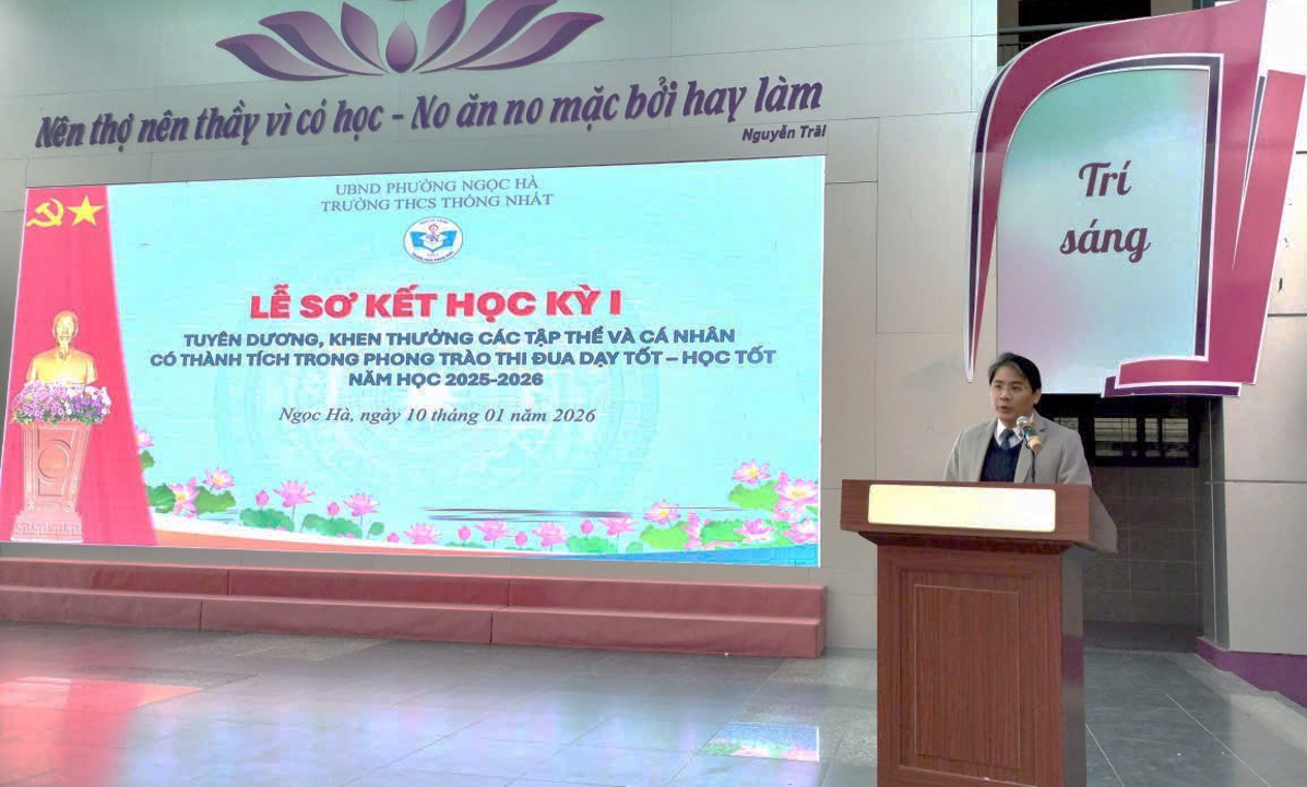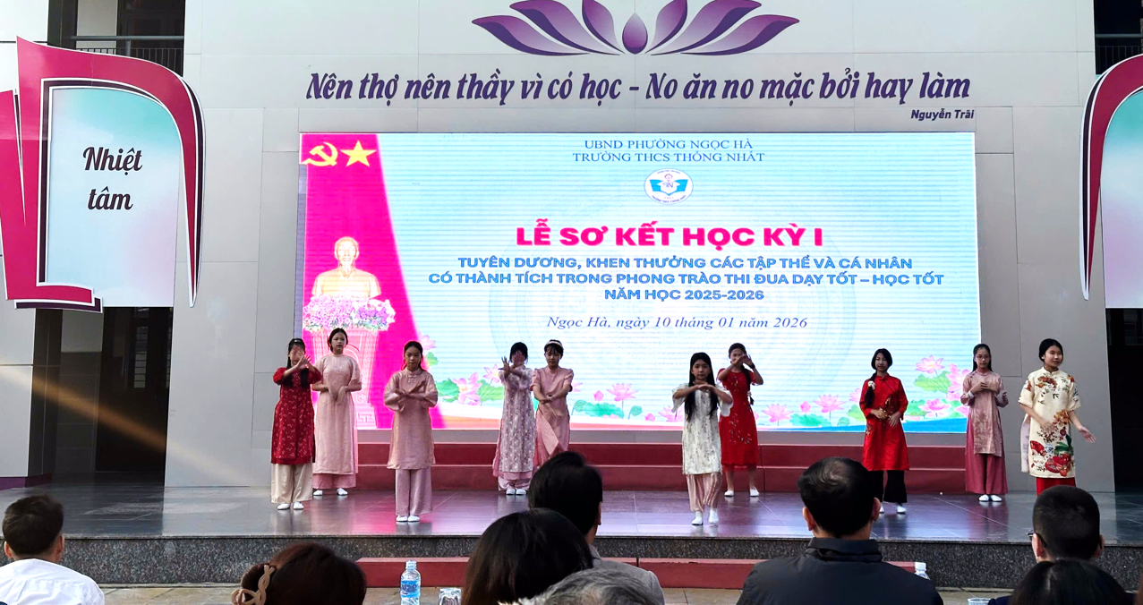 Lễ sơ kết học kỳ I năm học 2025 – 2026 là dịp quan trọng để thầy và trò trường THCS Thống Nhất nhìn lại chặng đường đã qua, từ đó tiếp tục phát huy những kết quả đạt được, khắc phục hạn chế, quyết tâm phấn đấu hoàn thành tốt nhiệm vụ học kỳ II, hướng tới một năm học thành công toàn diện.