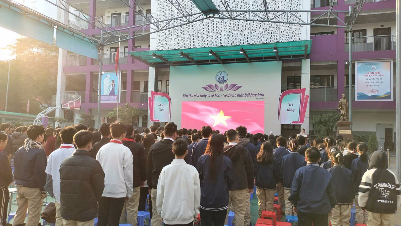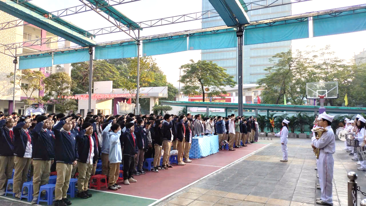 Tại buổi lễ, Nhà giáo Nguyễn Quốc Dương – Bí thư Chi bộ, Hiệu trưởng nhà trường đã báo cáo sơ kết học kỳ I, ghi nhận những nỗ lực, cố gắng của thầy và trò trong công tác dạy và học. Báo cáo khẳng định, mặc dù còn nhiều khó khăn, nhưng với tinh thần đoàn kết, trách nhiệm và quyết tâm cao, nhà trường đã đạt được nhiều kết quả đáng khích lệ trên các mặt: chất lượng giáo dục, bồi dưỡng học sinh giỏi, phong trào văn hóa – văn nghệ, thể dục thể thao và công tác Đội.