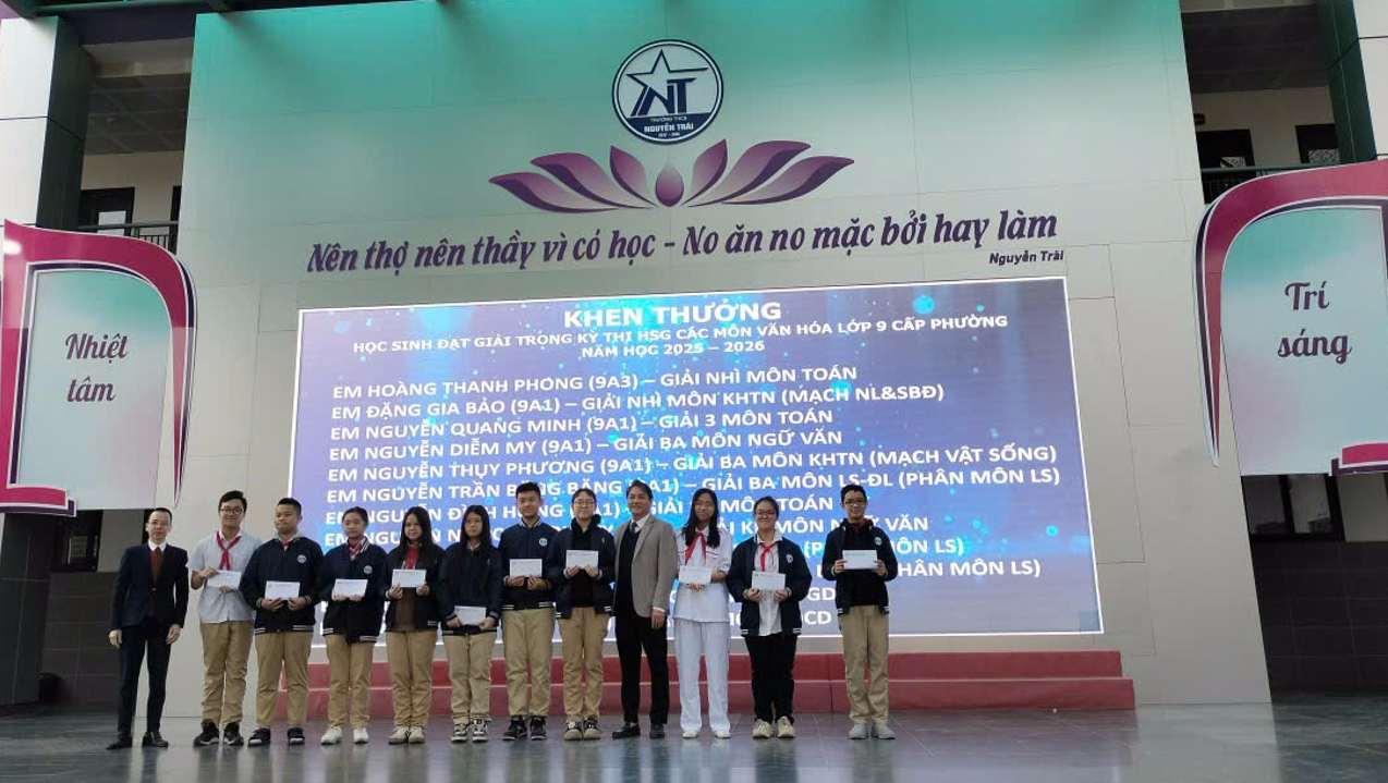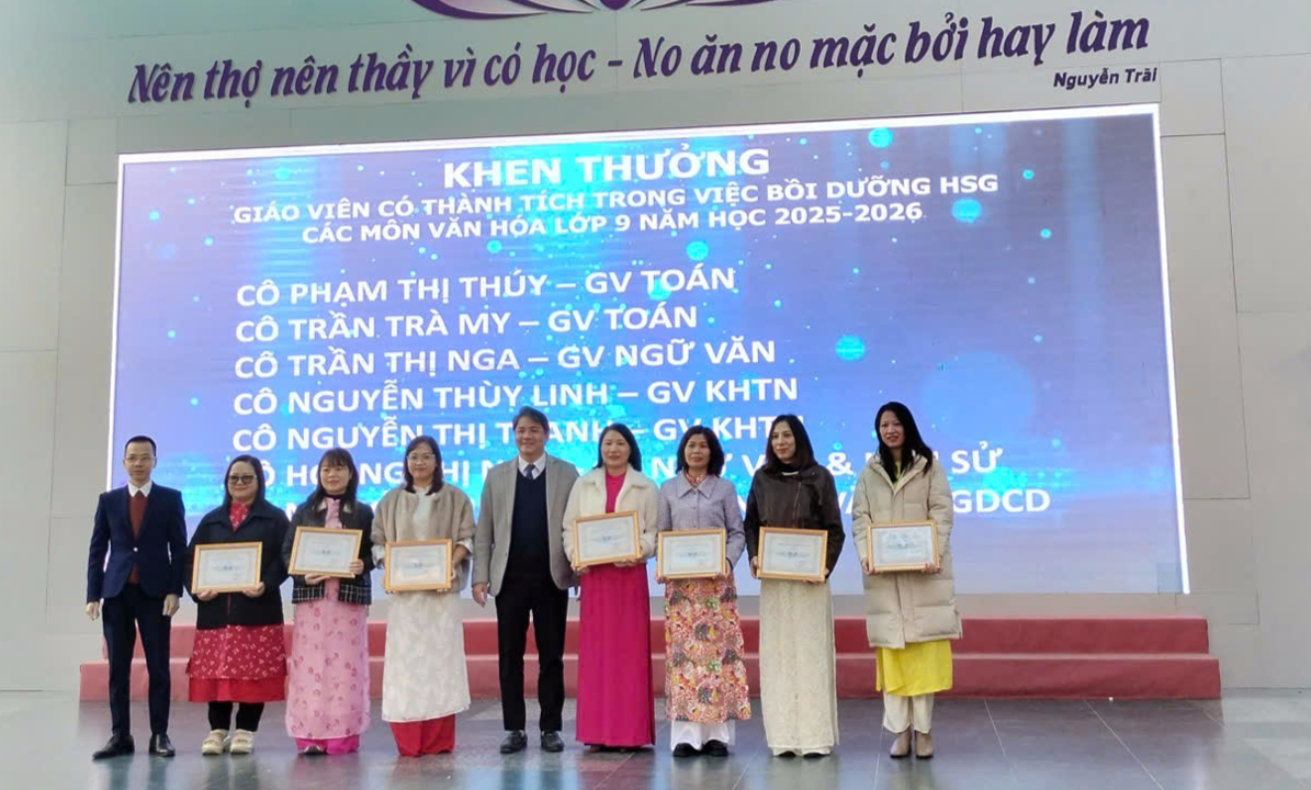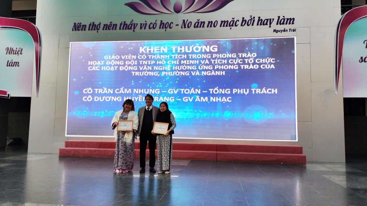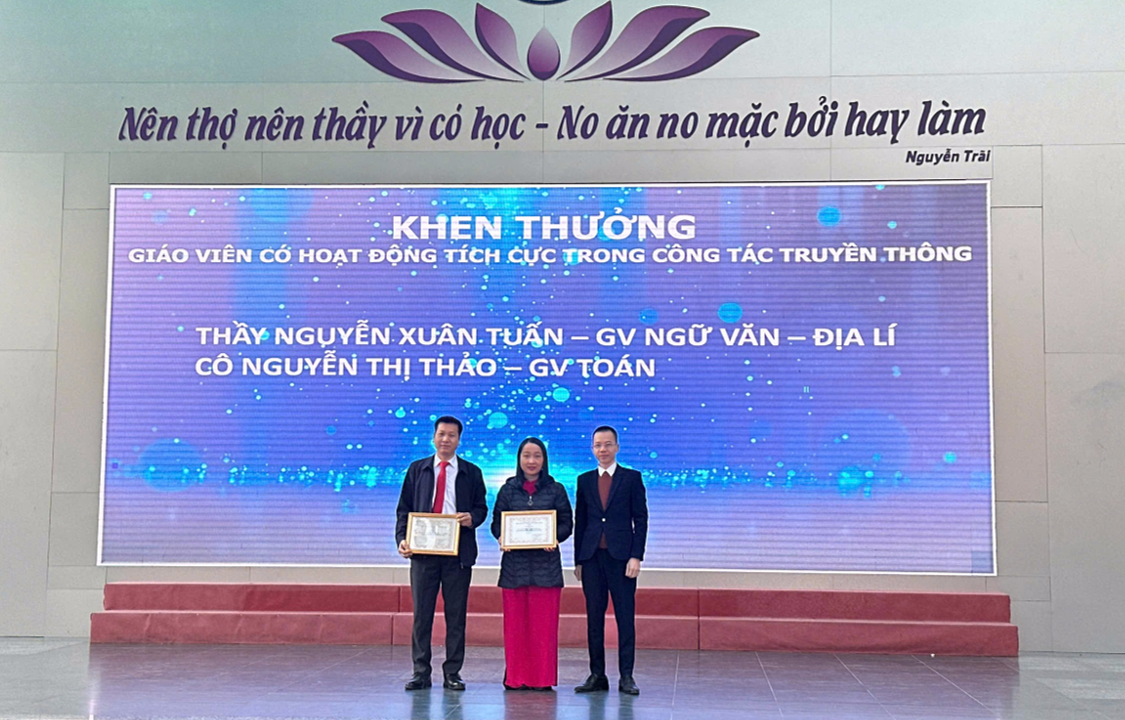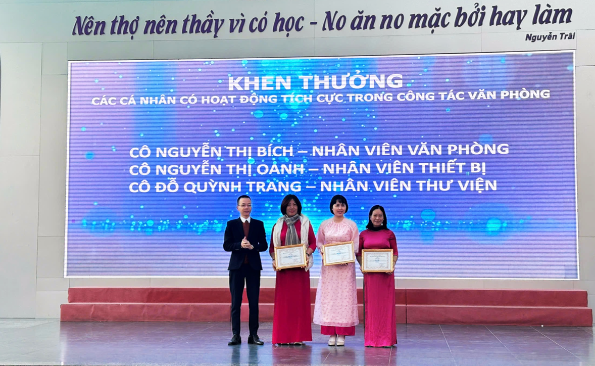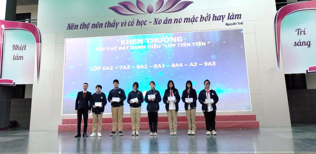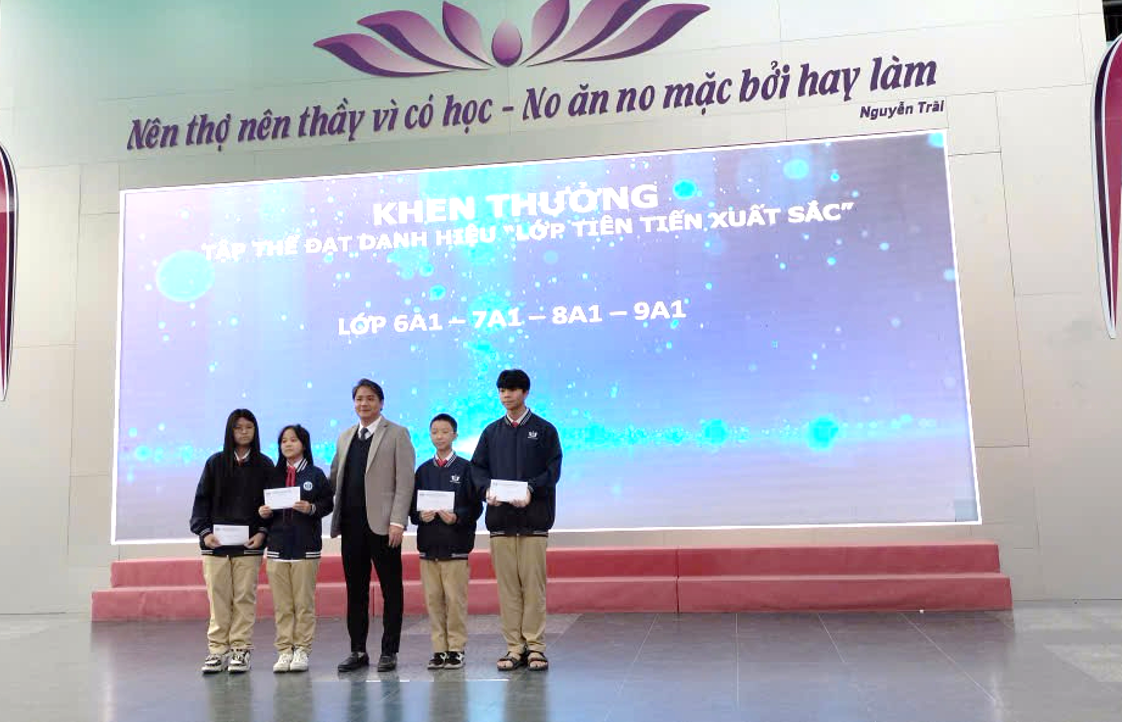 Trong khuôn khổ buổi lễ, nhà trường đã trao thưởng cho các tập thể lớp đạt danh hiệu Tiên tiến, Tiên tiến xuất sắc; các giáo viên có thành tích nổi bật trong công tác chuyên môn, bồi dưỡng học sinh giỏi, hoạt động phong trào; cùng nhiều học sinh đạt danh hiệu học sinh xuất sắc, học sinh giỏi và đạt giải trong các kỳ thi học sinh giỏi, thể dục thể thao các cấp.