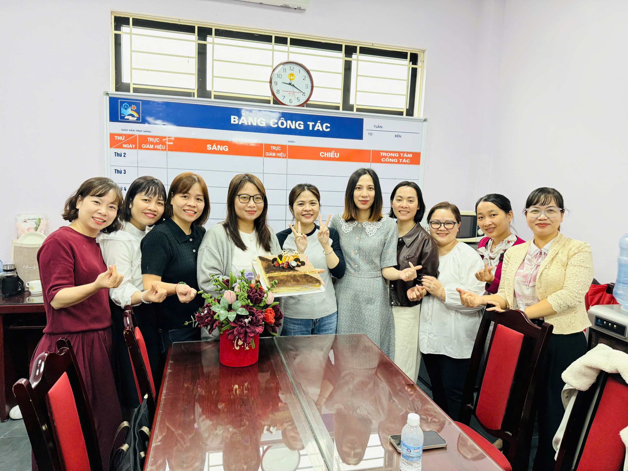 Các đồng chí giáo viên trong HĐSP trường THCS Thống Nhất tri ân đồng chí Nguyễn Thanh Thảo - nhân viên y tế trường THCS Thống Nhất.