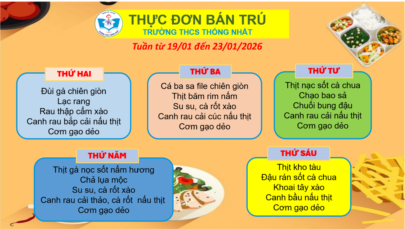 Thực đơn bán trú tuần từ 19/01 - 23/01/2026