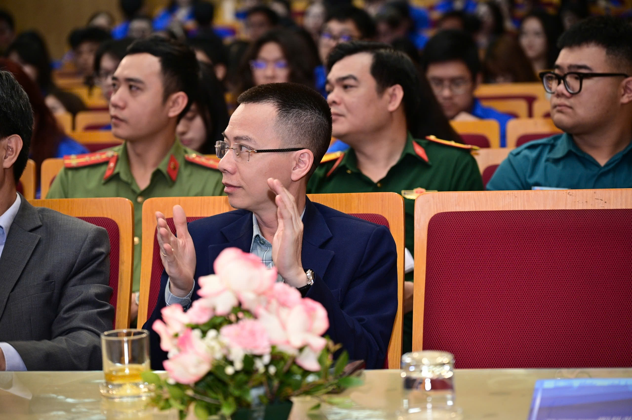Thầy giáo Giang Minh Hưởng – Phó bí thư chi bộ, Phó Hiệu trưởng trường THCS Thống Nhất cùng các đại biểu tham dự Hội nghị tuyên dương “Đảng viên trẻ tiêu biểu”.